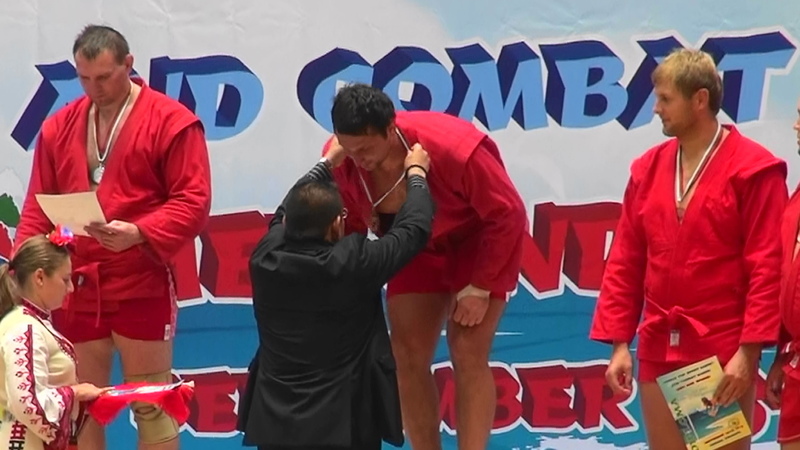 浅井信幸当連盟副会長・国際サンボ連盟エグゼブティブコミティーメンバーは男子+100kg級の表彰式プレゼンターを務めた。